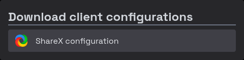 The download pane lets you download configuration for custom uploader clients.