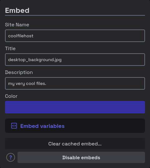 - :material-text-short: Title: The embed's title -- prominently displayed on apps